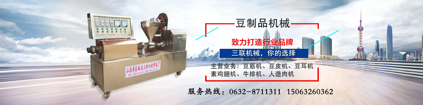 山亭區(qū)城頭三聯(lián)機(jī)械修造廠成立于1994年,位于鐵道游擊隊(duì)故鄉(xiāng)山東省棗莊市山亭區(qū)工業(yè)園,本地區(qū)交通十分便利,京福高速公路、京滬鐵路、104國(guó)道由此貫穿,是全國(guó)生產(chǎn)豆制品,規(guī)模較大的生產(chǎn)基地。山亭區(qū)城頭三聯(lián)機(jī)械修造廠經(jīng)過不斷的努力和研發(fā)終于有所突破,本廠的產(chǎn)品得到廣大消費(fèi)者的信任和擁護(hù),主營(yíng)豆制品機(jī)械和麻辣面食機(jī)械:素牛排機(jī)、素雞腸機(jī)、素雞脯肉機(jī)、豆蝦機(jī)、豆魚機(jī)..